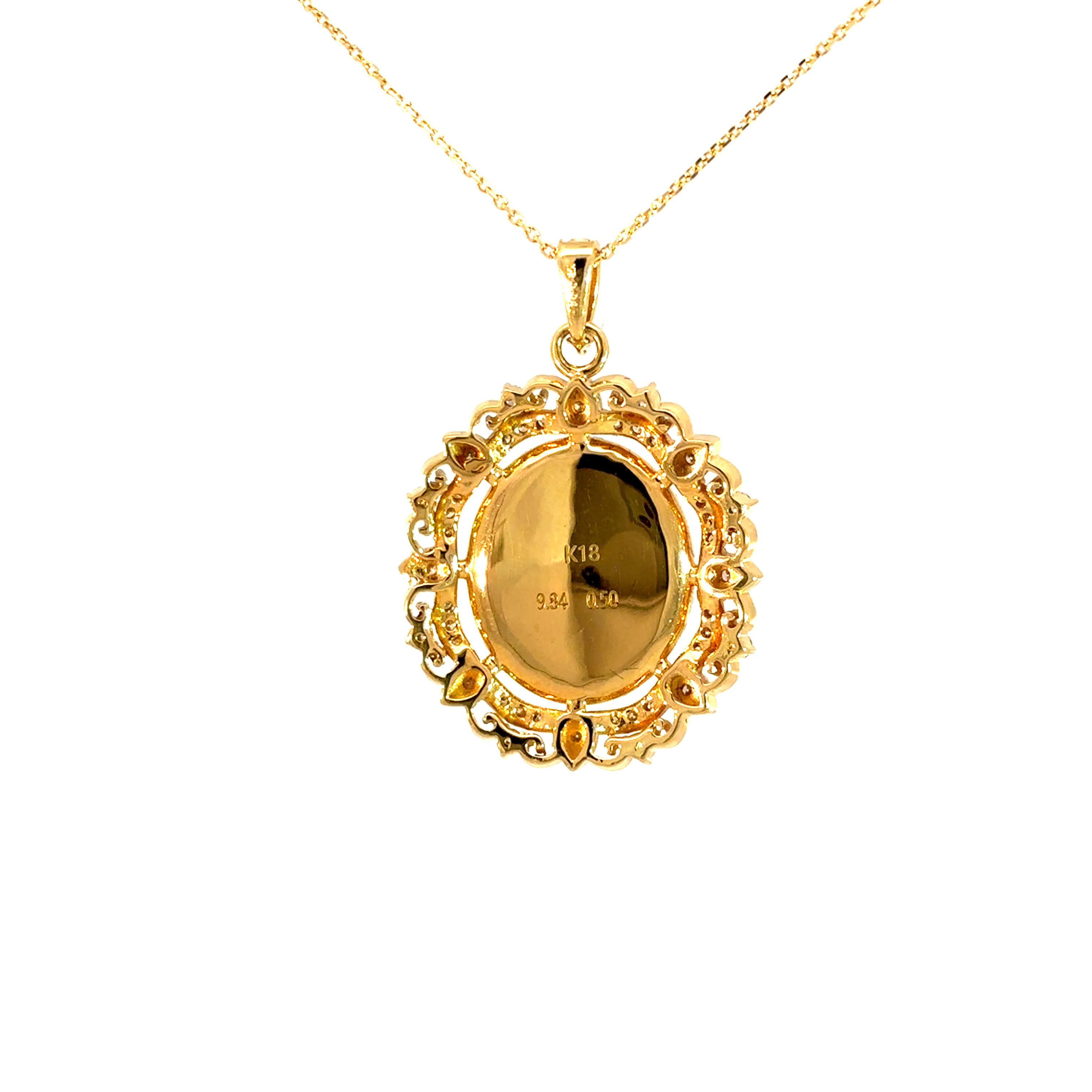 チェーンや枠など金属部分はすべてK18を使用しております。